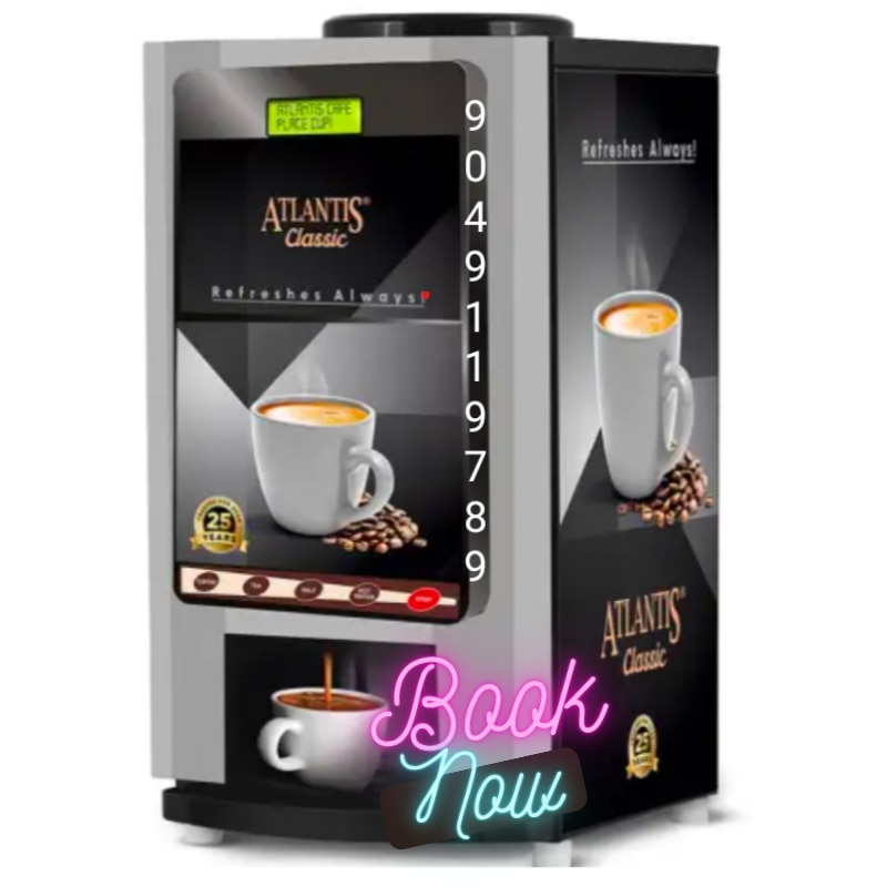 Atlantis is today amongst India's leading manufacturers of hot beverage vending machines having a nationwide presence with over 25 years of experience. Your instant tea and coffee, just a button away! Warranty: 1 year of free service at your place. Plastic parts are excluded from the warranty. The Atlantis Classic 2 Lane Tea and Coffee Vending Machine is a versatile beverage dispenser crafted to provide easy access to hot drinks in various settings. This vending machine allows users to select from 2 beverage options, catering to preferences for tea or coffee. It is an excellent choice for locations like offices, canteens, hotels, and public spaces seeking convenient hot beverage solutions. Premix based Tea-Coffee Vending Machine 2 Drink Options Available Dispensing speed of up to 3 cups / minute Ideal for Offices, Home, Commercial Spaces Half-cup feature with Counter User calibrated temperature 3 Litre Hot Tank with Membrane switch panel Powder Coated Body Bubble Top Water Supply Attractive design with ABS Moulded door Auto Flush Programmable Water Tank Material : Stainless Steel 304 One Year Warranty covered on all Technical parts. Warranty shall be considered void if Liquid Milk is used in this machine. Manufactured and Packed By: The Vending Company.